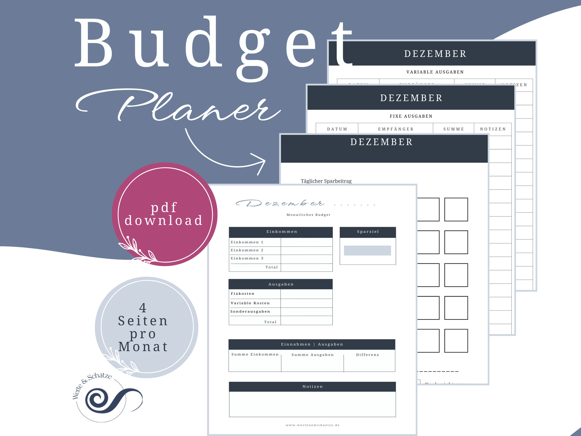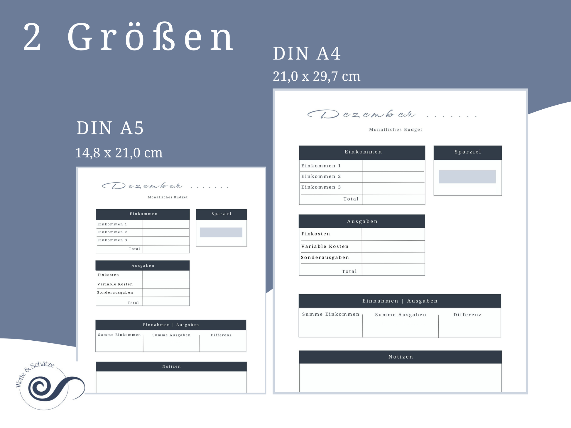 Der Budget Planer ist auf Deutsch und als download in DIN A4 und DIN A5 verfügbar.