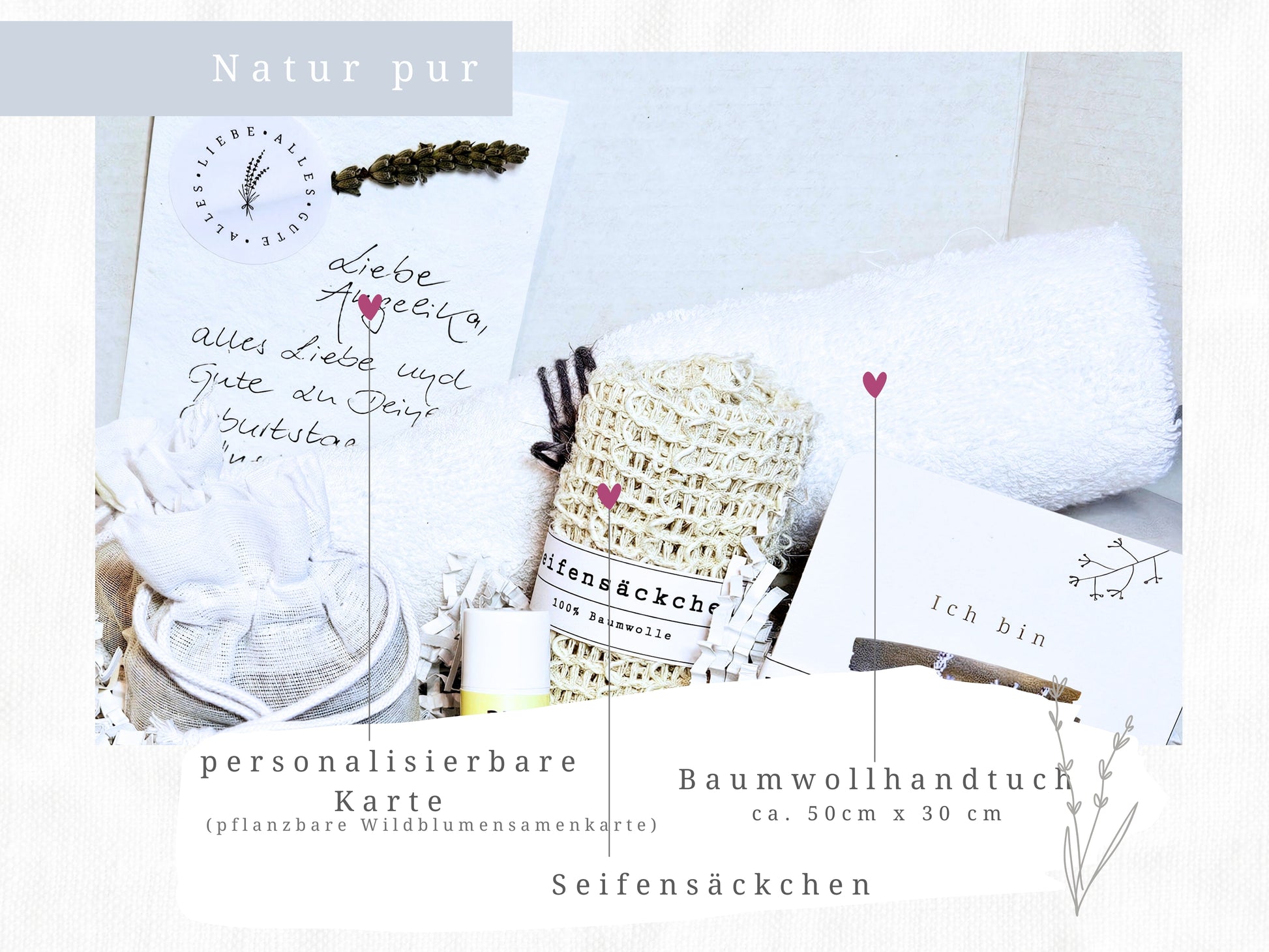 - 1 x Seifensäckchen (ca. 9x13cm, 100% Baumwolle)